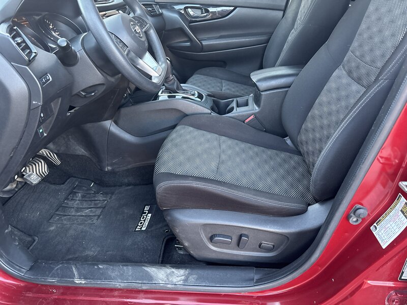 2019 Nissan Rogue Sport S — compact, frugal, and annoyingly sensible: powered by a 2.0L I4 making 141 hp and 147 lb-ft of torque, mated to Nissan’s smooth Xtronic CVT for fuss-free city and highway driving. Factory-default comforts and toys stick to the essentials: cloth seats with manual adjustments and a 60/40 split-folding rear bench for impromptu cargo Tetris, air conditioning, cruise control, tilt steering, power windows and locks, remote keyless entry, Bluetooth hands-free and audio streaming plus a USB port and AM/FM radio for your playlists, and a rearview camera for backing up without drama. Outside it rolls on practical 17-inch wheels and inside it’s trimmed in easy-clean materials — think reliable roommate, not diva.